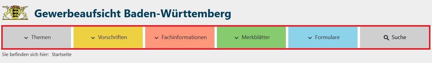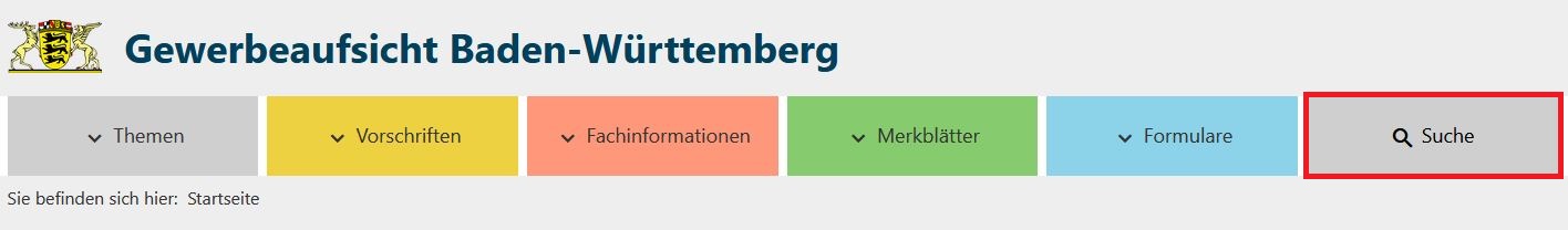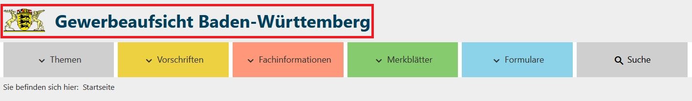 Ganz oben links finden Sie das Landes-Wappen von Baden-Württemberg und dahinter steht Gewerbe-Aufsicht Baden-Württemberg.